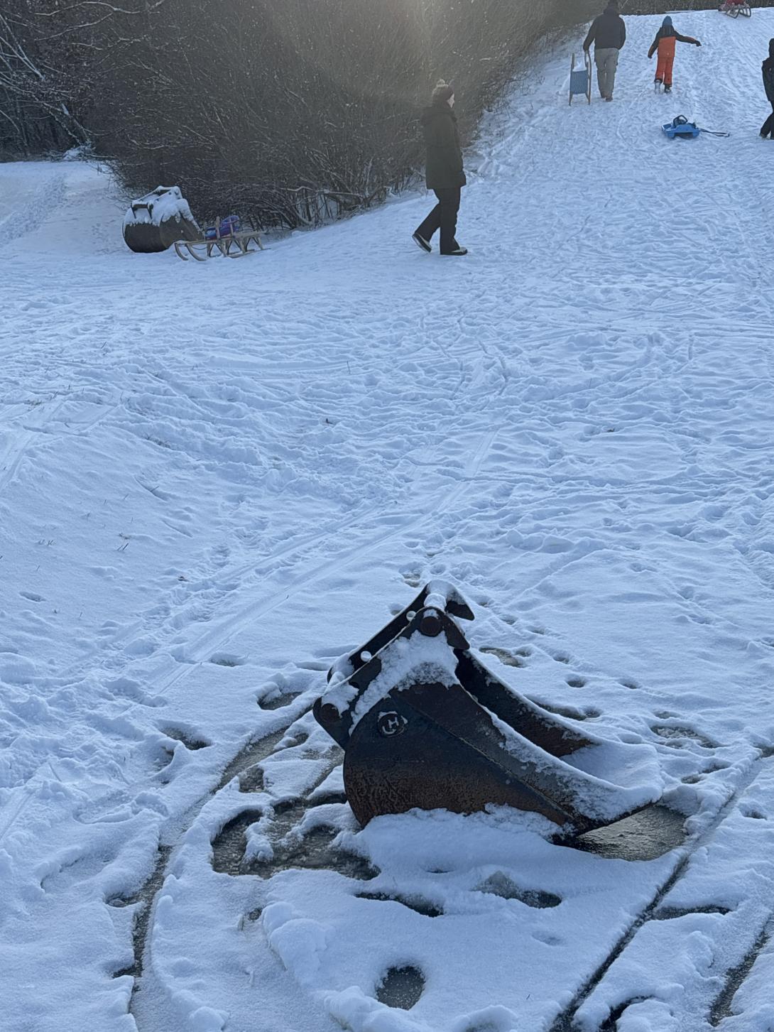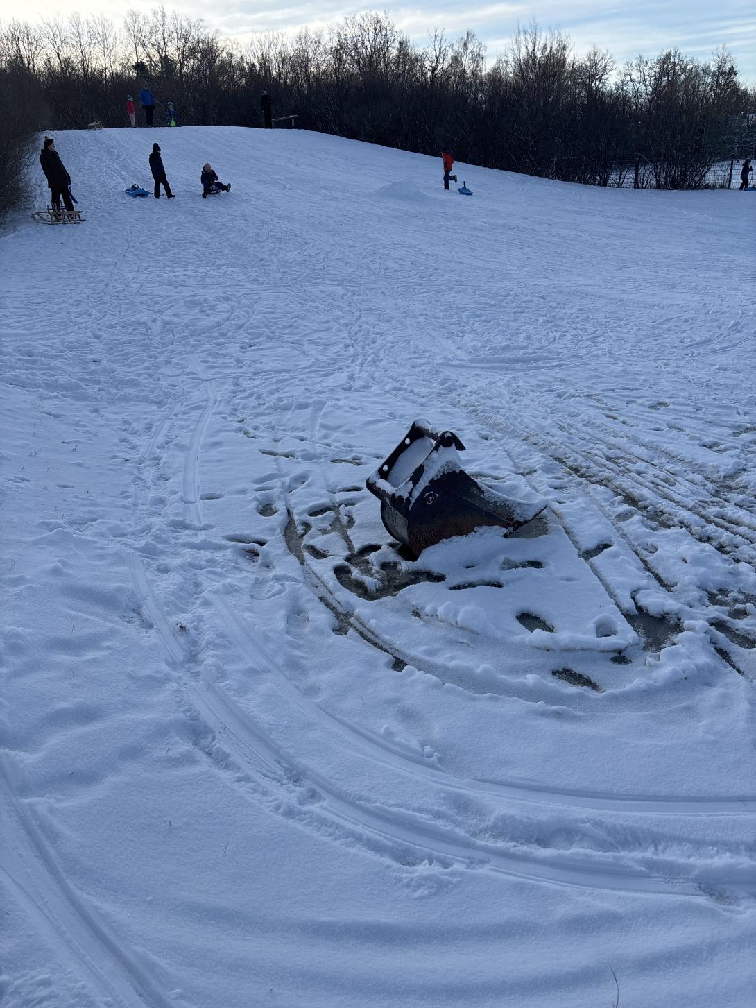 Baggerschaufel mitten in der Rodel-/ Schlittenbahn