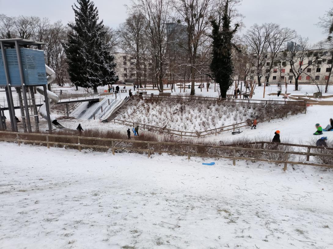 Drigend!! seit ca. 3 Jahren wurde an unserem Spielplatz ein Holzgeländer befestigt, vermutlich um die Büsche zu schützen. Allerdings ist das Holzgeländer direkt vor dem Rodelhang und es passiert jedes Jahr wieder, dass sich Kinder ernsthaft verletzen. Gestern hat sich ein Mädchen den Arm gebrochen.