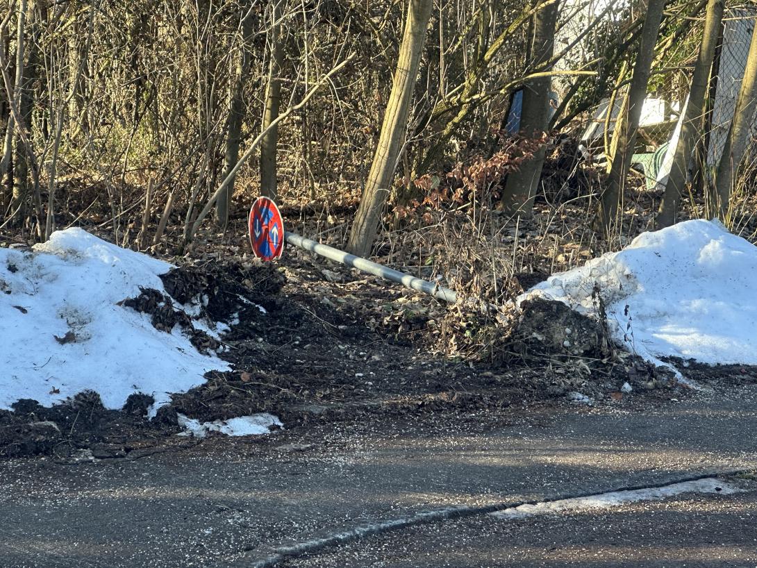 Das Parkverbotsschild im Wendehammer ist komplett umgefahren