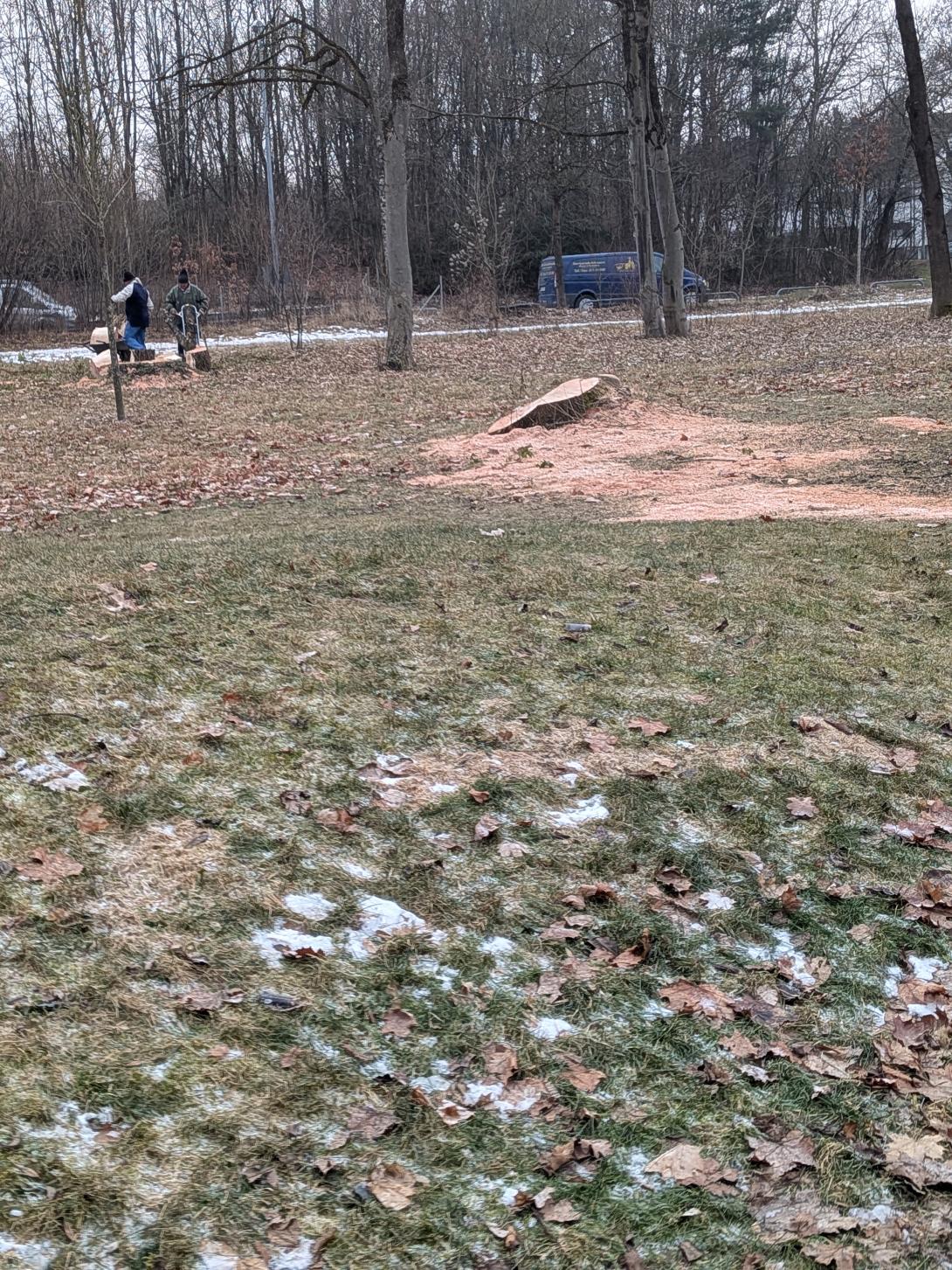 Bei uns Nähe der Gerberau 15. Neben dem Spielplatz wurden zwei Bäume gefällt. Ich habe zwei Männer gesehen, die Holz mitgenommen haben, die nicht bei der Stadt arbeiten. Ich fürchte, sie haben auch die Bäume gefällt.