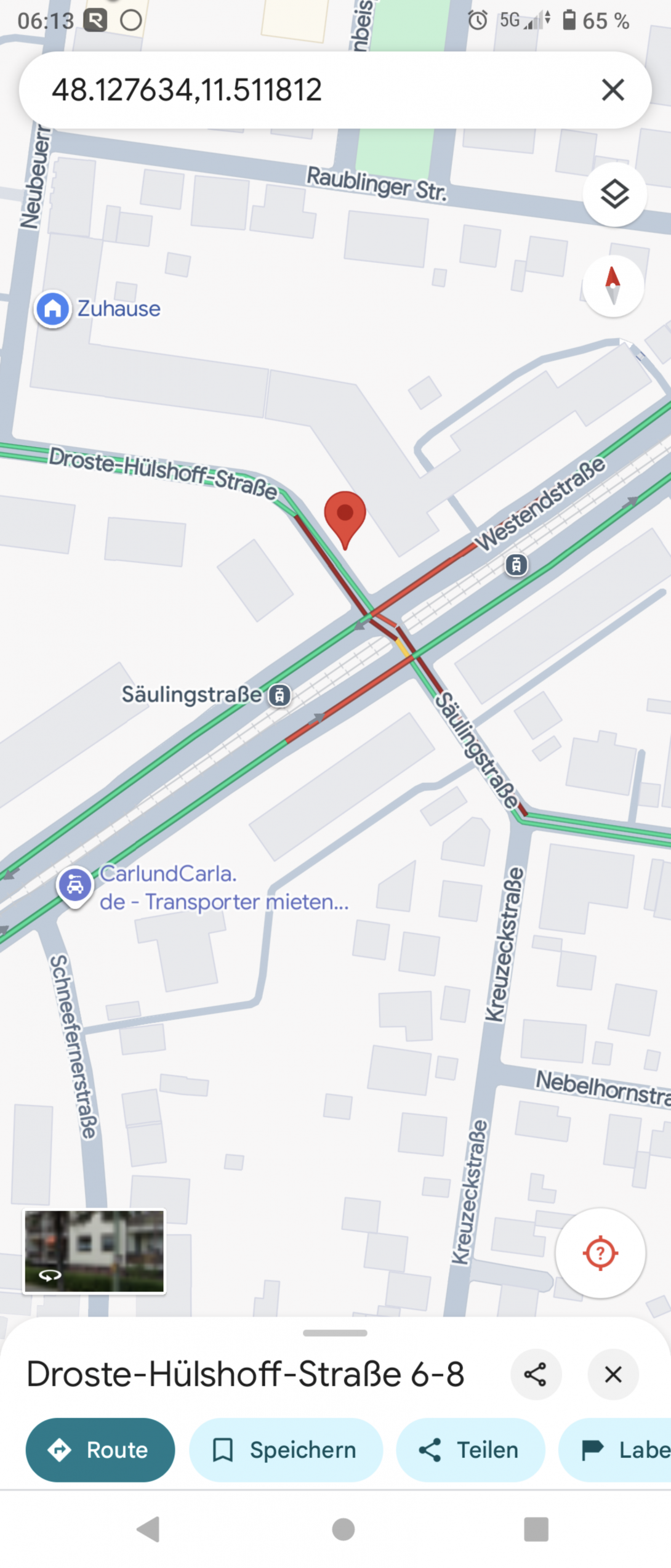 Endlich komme ich dazu, ich fahre um 5:30 zur Arbeit. wenn ich aus der Droste Hülshoff Straße (Nebenstraßen) komme wird die Ampel Nicht grün, nur wenn ein Auto an der entgegengesetzten Strasse der Säulings Straße steht.