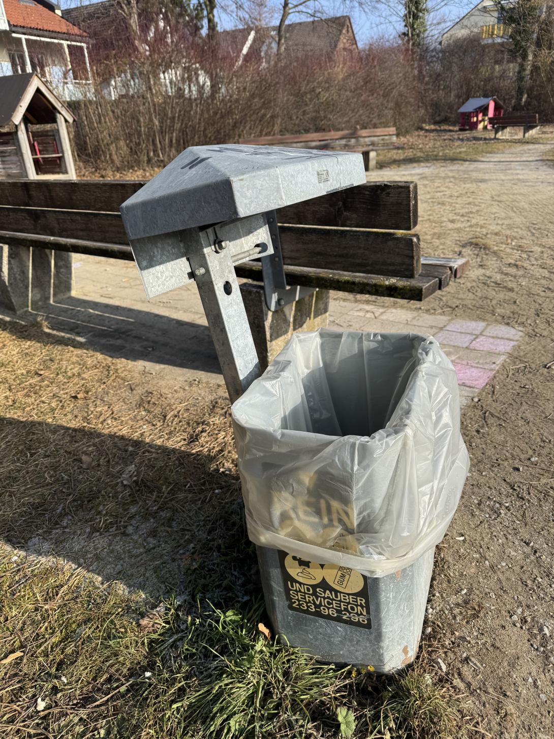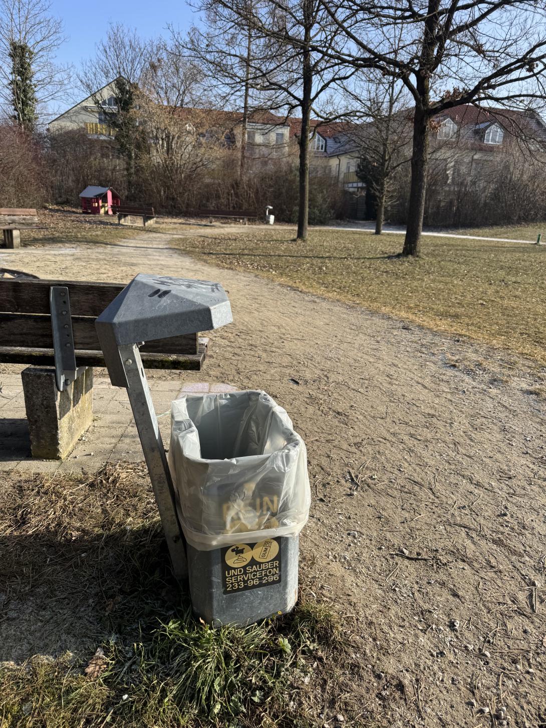 Alle 6 Mülleimer im Park sind seit Monaten abgehängt. Vögel, Ratten und Hunde bedienen sich aus den Mülleimern wie in einem Buffet. Müll wir deswegen rund herum verteilt weil die Tiere den Müll rausziehen. Bitte aufhängen!