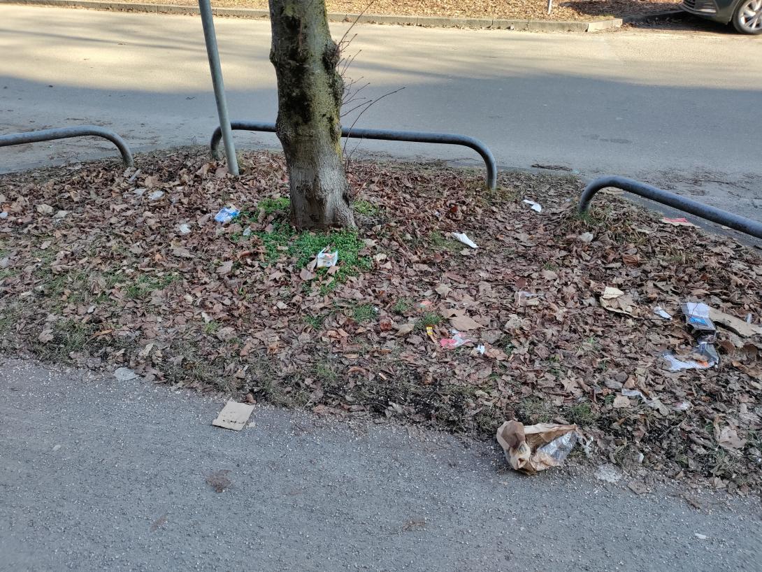Leider wieder Haushaltsmüll (v.a. Verpackungsreste) entlang der Säbener Str. ab dem Wettersteinplatz, v.a. um die Bäume