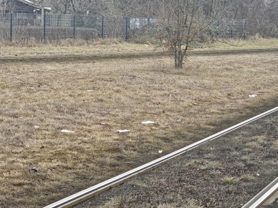 Die Straßenbahnschienen sind komplett vermüllt. Bitte sofort reinigen!