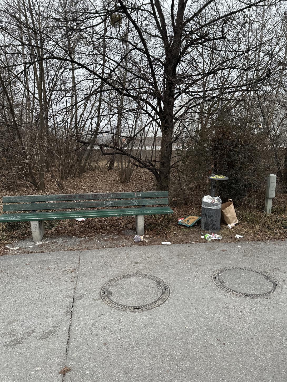 Breite Vermüllung vor dem backstage und rund um das backstage an allen Seiten