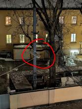 Laterne Nummer 8 am Eingang von der Kinderkrippe/von dem Kindergarten leuchtet nicht.