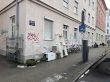 Sperrmüll liegt dort seit dem Auszug der Mieter im 4. Stock vor einigen Wochen. Bitte höflich um Beseitigung.