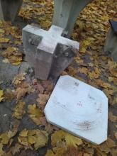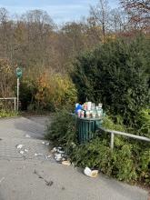 Beide Mülleimer (vor dem Eingang zum Spielplatz sowie auf dem Spielplatz) sind kaputt.