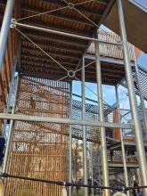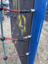 Am Klettergerüst ist eine der Befestigungen des Kletternetzes abgerissen.