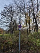 Eine der Lampen, die den Fußgängerüberweg beleuchten, ist ausgefallen.
