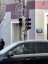 Die Fußgänger Ampel des Fußgängerüberwegs,der nordöstlichen Ecke funktioniert nicht. Das rote Ampelmännchen leuchtet nicht.