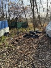 Jemand hat seine kompletten Unrat , Müll und elektroschrott dort entsorgt. Der Müll verteilt sich munter und wird verteilt.