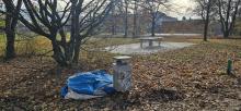 Im Park hinter der Tramhaltestelle St.Veitstraße auf Höhe der Tischtennisplatten liegt Müll