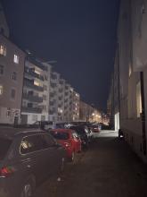 Der untere Teil der Danklstraße ist ohne Straßenbeleuchtung.