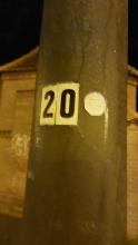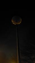 Laterne Nr. 20: eine von beiden Natriumdampflampe zündet, geht nach kurzer Zeit sofort wieder aus und glimmt dann nur noch schwach