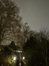 Laterne Nr. 8: eine von beiden Natriumdampflampe zündet und geht nach kurzer Zeit wieder aus