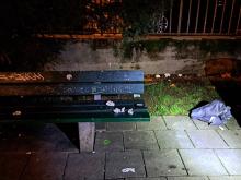Vermüllung um die Bänke herum