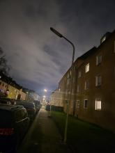 Straßenbeleuchtung defekt, in der Nähe des Eingangs zum Ostpark an der Albert-Schweitzer-Straße
