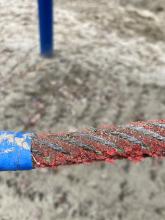 Draht am Klettergerüst schaut heraus, sodass Kinder sich verletzen können.