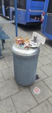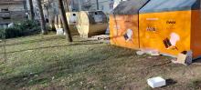 Alle 6 Mülleimer im Park sind seit Monaten abgehängt. Vögel, Ratten und Hunde bedienen sich aus den Mülleimern wie in einem Buffet.