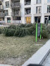 Die Grünstreifen am oberen Ende der Bauseweinallee - zwischen der Hausbaustelle und Wertstoffinsel oberhalb der S-Bahn-Station UNTERMENZI