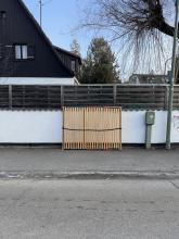 Auf dem Gehweg liegt eine Matratze, wir haben sie nun aufgestellt bei Hausnr. 2