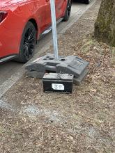 Autobatterie wurde am Straßenrand auf dem grünen Streifen stehen gelassen