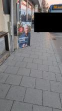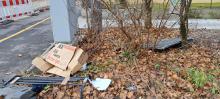 Im bepflanzten Bereich am Ende der Straße zur Agnes-Bernauer-Str. liegt seit Wochen ein entsorgen Flachbildschirm und anderer Müll.