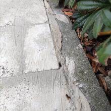 Nach Glasfaserkabelverlegen wurde der Gehweg mit einer aushärtenden, nicht wasserlöslichen Masser verschmiert - richtig wäre absanden mit