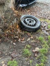 Reifen auf der Wiese liegen lassen