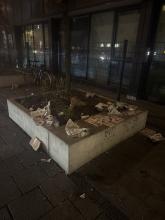 Der Grünstreifen ist total verschmutzt, Fastfoodverpackungen, Einwegbecher tc.