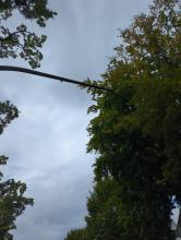 Zwischen Sofiastrasse und Helsinkistrasse - in der Parkanlage - ist Mast-Nr. 8 ausgefallen.