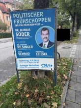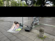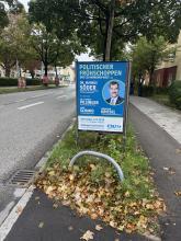 Plakat von B90/Die Grünen mit Hinweis auf Telefonsprechstunde (spätestens Termin 25.08.).