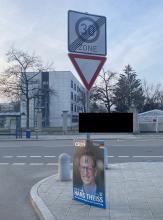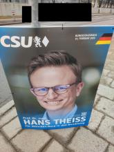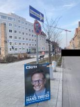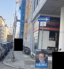 CSU Plakat hängt zu nahe an Kreuzung Gabelsbergerstr Ecke Richard Wagnerstraße