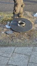 Lampenschirm liegt abgerissen und zerstört auf der Tramhaltestelle