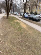 Grünstreifen immer noch voller Silvester Müll. Und Einkaufswagen stehen auch überall herum.