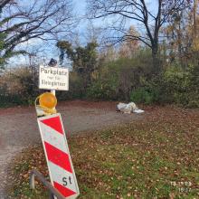 Auf dem Kleingärtnerparkplatz - öffentlicher Grund - liegt seit einigen Tagen ein undefinierbarer Abfall.