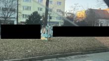 Abdeckung Verkabelung abgerissen. Laterne 1 auf Fußweg und Radweg Amsterdamer Str.