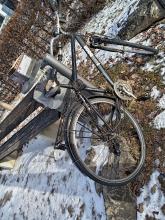 Am Spielplatz sind seit einiger Zeit zwei alte Fahrräder. Anfangs hing eins sogar am Baum. Jetzt liegen sie in einer Ecke.