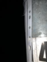 Da steht schon länger ein schiefer Mast, der in die Fahrbahn ragt.