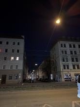 Das ganze Wartehäuschen „Hermann-Lingg-Straße“ der Tram ist stromlos. Die ganze Beleuchtung ist dunkel und der FIS Monitor ebenfalls.