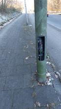 Die Fußgängerampel an der Kreuzung Friedenspromenade Ecke Gartenstadtstraße mit der Mastnummer 732 wurde von einem LKW/Bus abgeräumt und