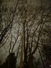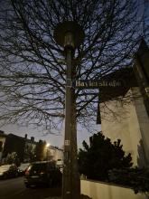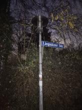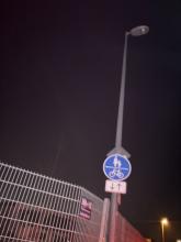 Einer von beiden Lampenarmen an Mast Nr. 55 komplett dunkel