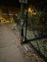 An der Ampel an der Thomas-Dehler-Str. / Von-Knoeringen-Str. ist die Schute 041 abgefallen und liegt am Boden.