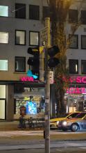 Die Rotschaltung der Fussgängerampel bei der Tram Haltestelle Bartstrasse ist ausgefallen.
