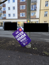 Die Fußgängerampel an der Ecke Feldbergstraße/Wasserburgerlandstraße mit der Nummer 532 wurde durch einen LKW o.ä.