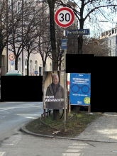 Seite Johannes-Neuhäusler-Str. 6, rechts neben der TG Einfahrt.