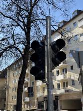 Bei Überquerung der Beethovenstraße In Laufrichtung zur Schule/Haydnstraße funktioniert das grüne Ampelmännchen nicht - das rote schon.